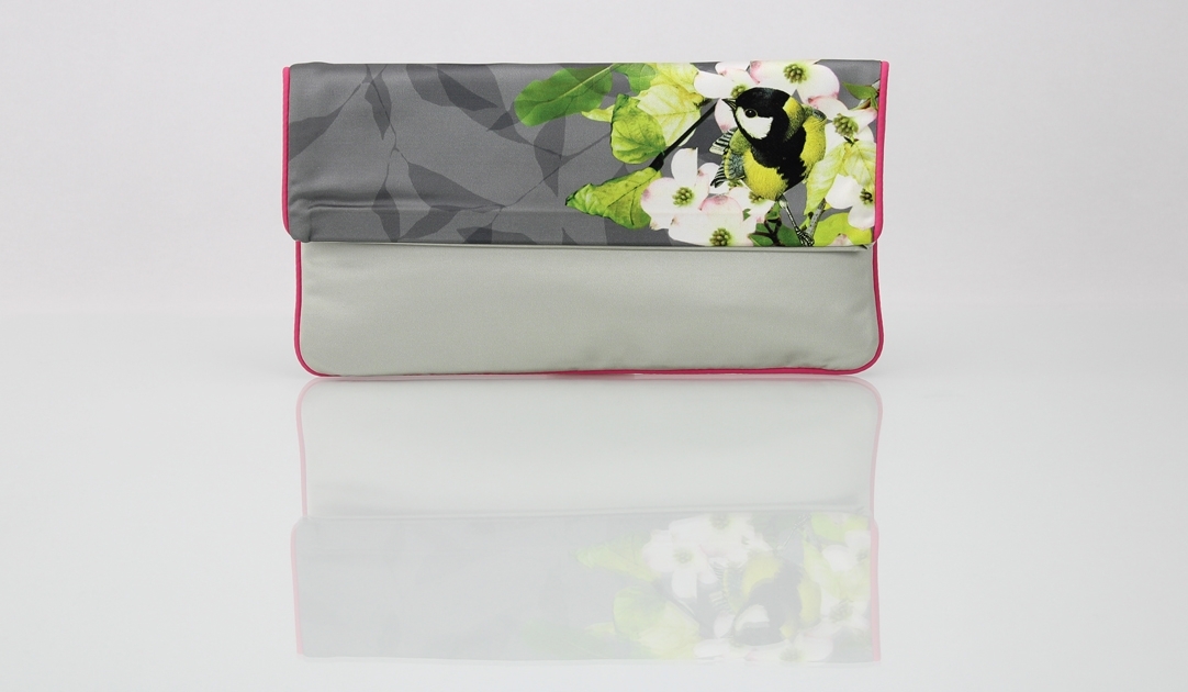 Frisch, hell, elegant und mit viel Leichtigkeit: Die neue Clutch-Kollektion setzt in spannenden Anthrazit-Nuancen mit neonfarbenem Keder und fotorealistischem Aufdruck Akzente.